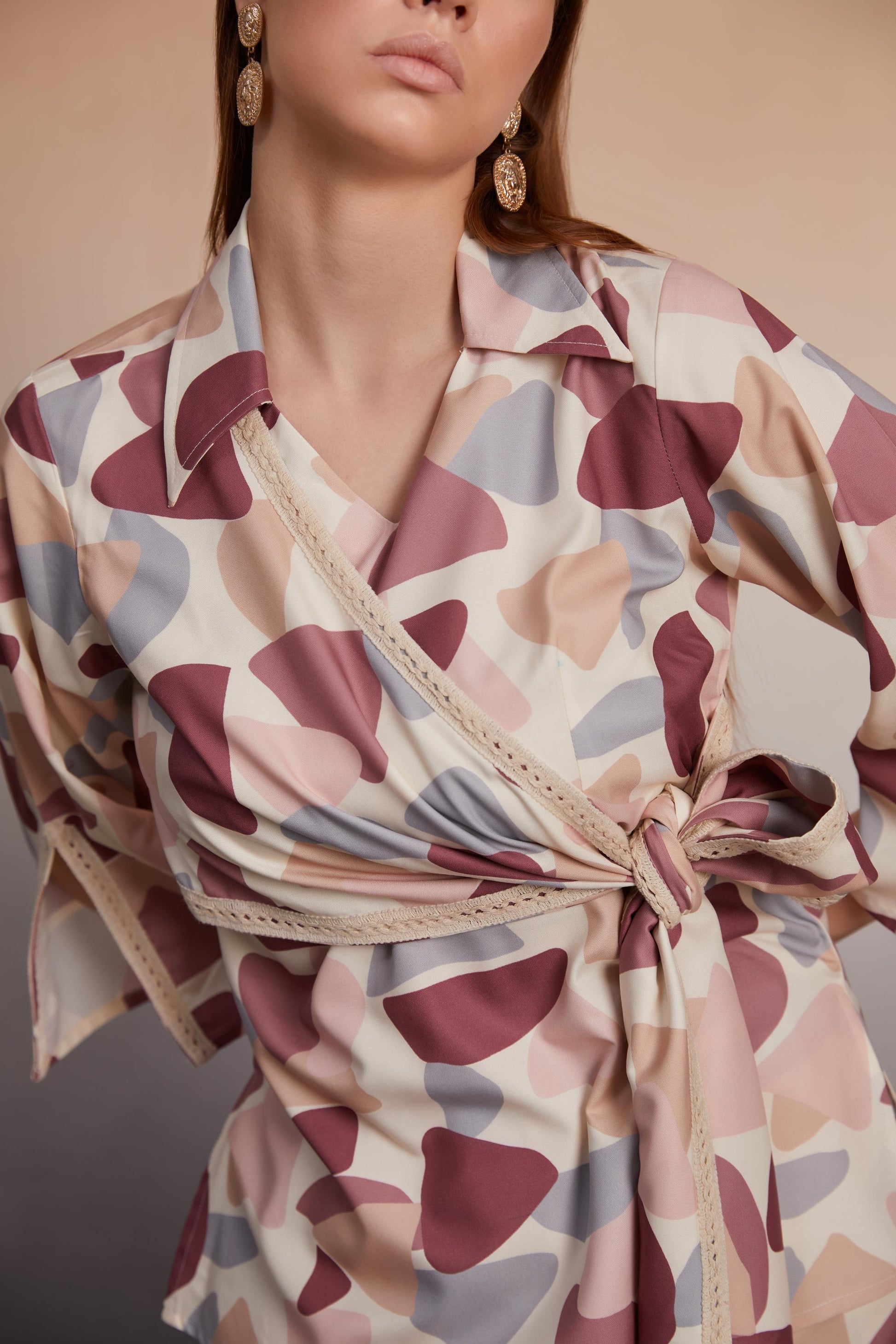 Abstract Wrap-Style Co-Ord Set with Lace Details
